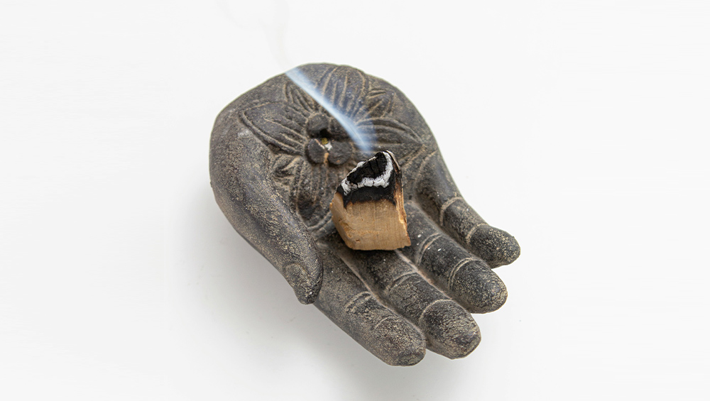 Legno naturale e aromatico ricavato dal Messico e Perù dall’albero di Bursera Graveolens, è conosciuto come Palo Santo. Derivante dalla cultura Inca come rimedio spirituale e purificatore dagli spiriti malevoli, il suo legno è composto da una resina aromatica che può proteggere da funghi e insetti. Dalle note agrumate, si racconta che il suo fumo bianco emani energia positiva offrendo benessere ed abbondanza a chi lo utilizza. Una qualità apprezzata dai nativi americani durante le cerimonie indigene per la creazione di oggetti protettivi e decorativi. Nell’aromaterapia il suo delicato profumo è particolarmente apprezzato per le proprietà calmanti.
